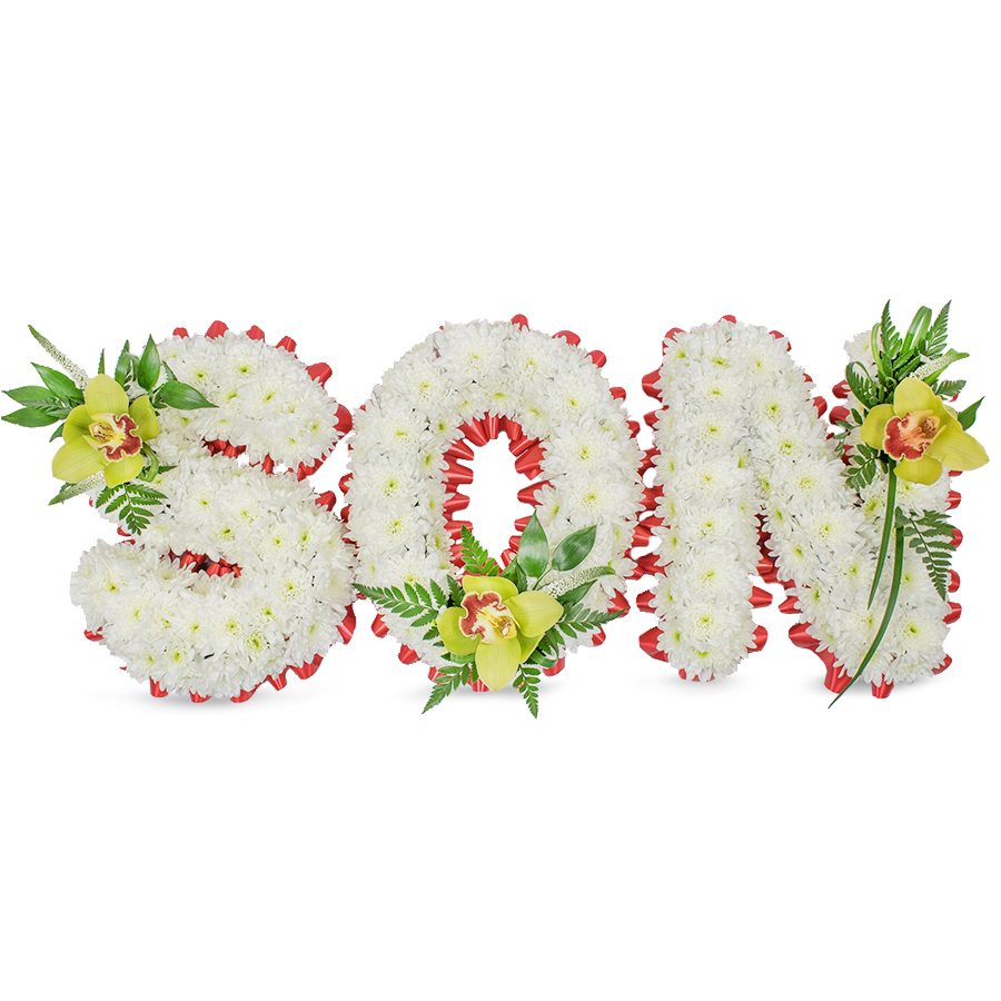 Honor a cherished life with the Heavenly Son Tribute from Motspur Park Florist. This elegant white floral spray features delicate white chrysanthemums, exquisite orchids and graceful white veronica, carefully arranged with lush ruscus, leather leaf and bear grass. Designed to express heartfelt sympathy, warm thoughts and sincere remembrance, it is a beautiful way to say they will never be forgotten. Crafted by our experienced Motspur Park florists, this premium funeral tribute offers a peaceful, heavenly look that brings comfort to family and friends at a difficult time. Approximate dimensions: 90cm (35") in length, 33cm (13") in width and 20cm (8") in height, making it ideal for display at the funeral service, chapel or graveside. Due to seasonal availability, some flowers may be substituted with blooms of similar colour, style and value, ensuring the same high quality and elegant appearance. Order online from Motspur Park Florist for reliable, professional service and timely delivery to local funeral directors and venues.